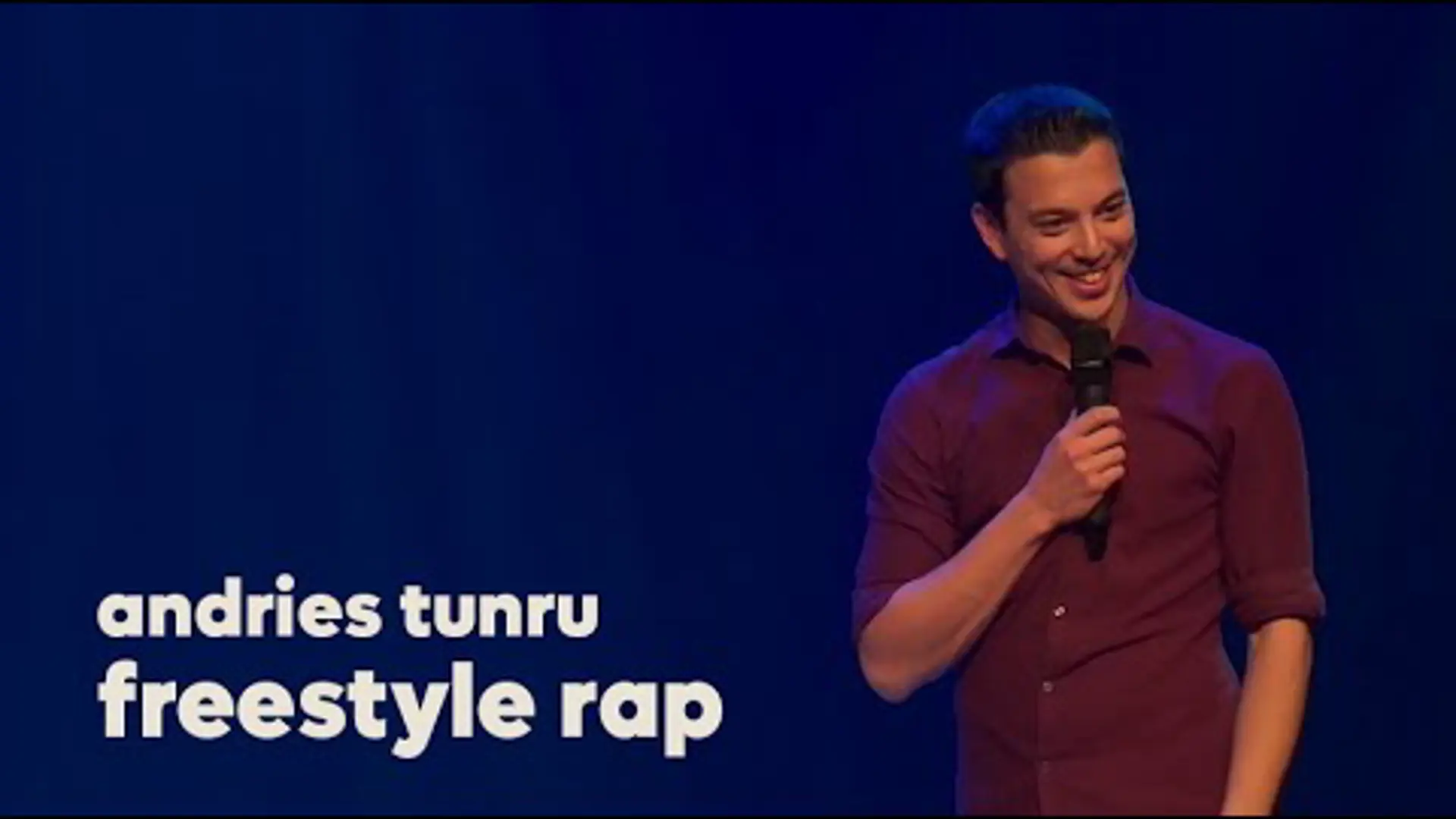 Andries Tunru is niet zomaar een cabaretier. Hij is drievoudig Nederlands kampioen improvisatietheater en heeft prijzen gewonnen op drie verschillende cabaretfestivals. Hij tourt langs de Nederlandse theaters met zijn eigen soloprogramma’s en is daarnaast de helft van het succesvolle improvisatieduo Beperkt Houdbaar. Zijn show Marmer werd genomineerd voor de prestigieuze Poelifinario: de prijs voor het meest indrukwekkende cabaretprogramma van het seizoen.