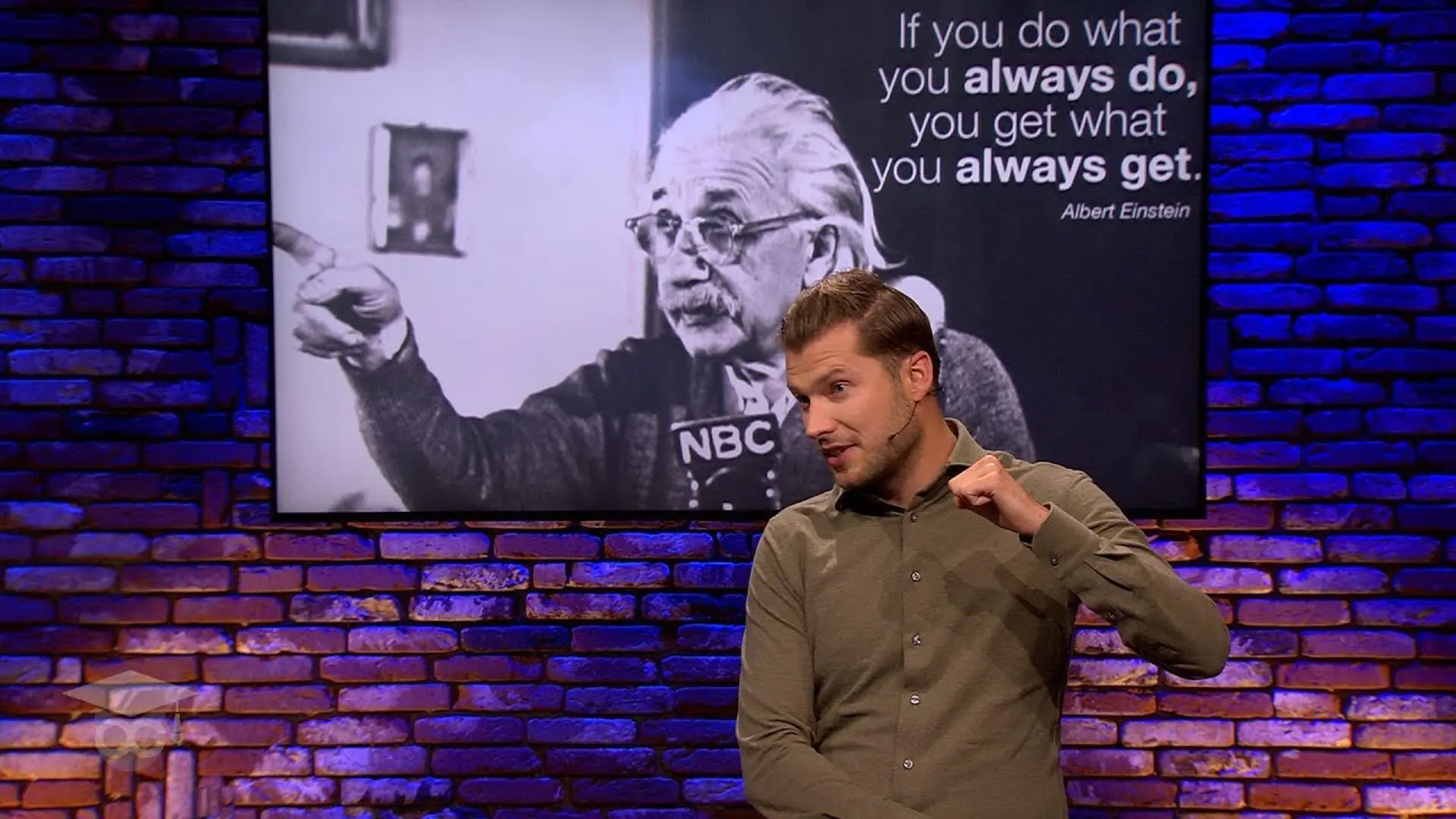 Zijn stijl is los, benaderbaar en scherp. Met veel interactie weet hij zijn publiek te betrekken bij het verhaal. Hij stelt vragen die aan het denken zetten en deelt verhalen die blijven hangen. Zijn doel: mensen in beweging brengen, niet alleen in hun hoofd, maar vooral in hun gedrag.